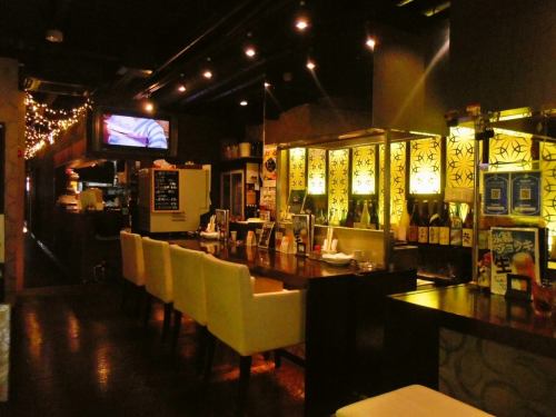 間接照明のほのかな光に包まれて、落ち着きの空間を演出。気の合う仲間同士、ゆっくり楽しめる。